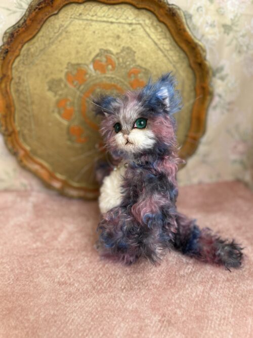 写真が暗めですみません。実際にはカラフルな雰囲気です。グリーンの濁ったグラスアイもとても似合って神秘的になりました。でも表情はいたずらっぽいというか子供っぽくてふしぎにゃんという名前になりました。