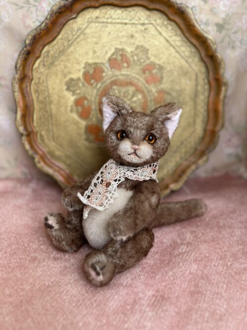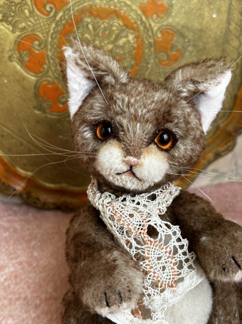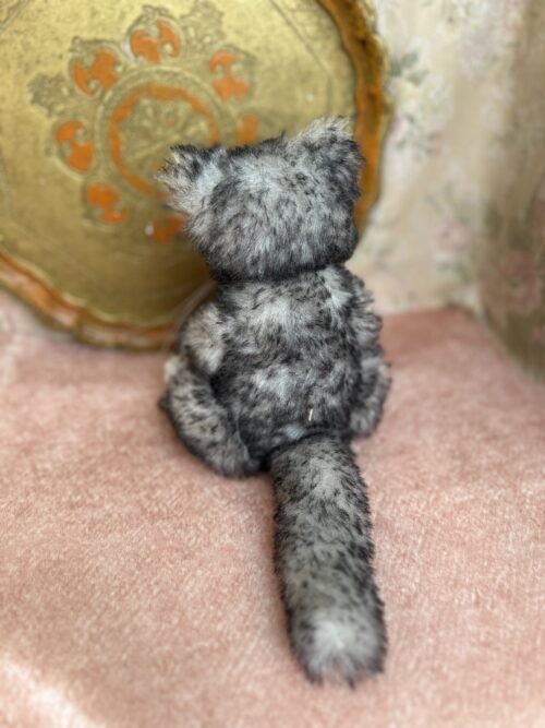 リッティベアさん納品の最後の仔はふくふくにゃんです。この仔はモヘアではなくアルパカのチップドで毛足が長めなんです。オオカミさんとかにむいてるような生地ですね。触っていると癒されます。体長は23㎝くらいですが少し大きめに感じますね。